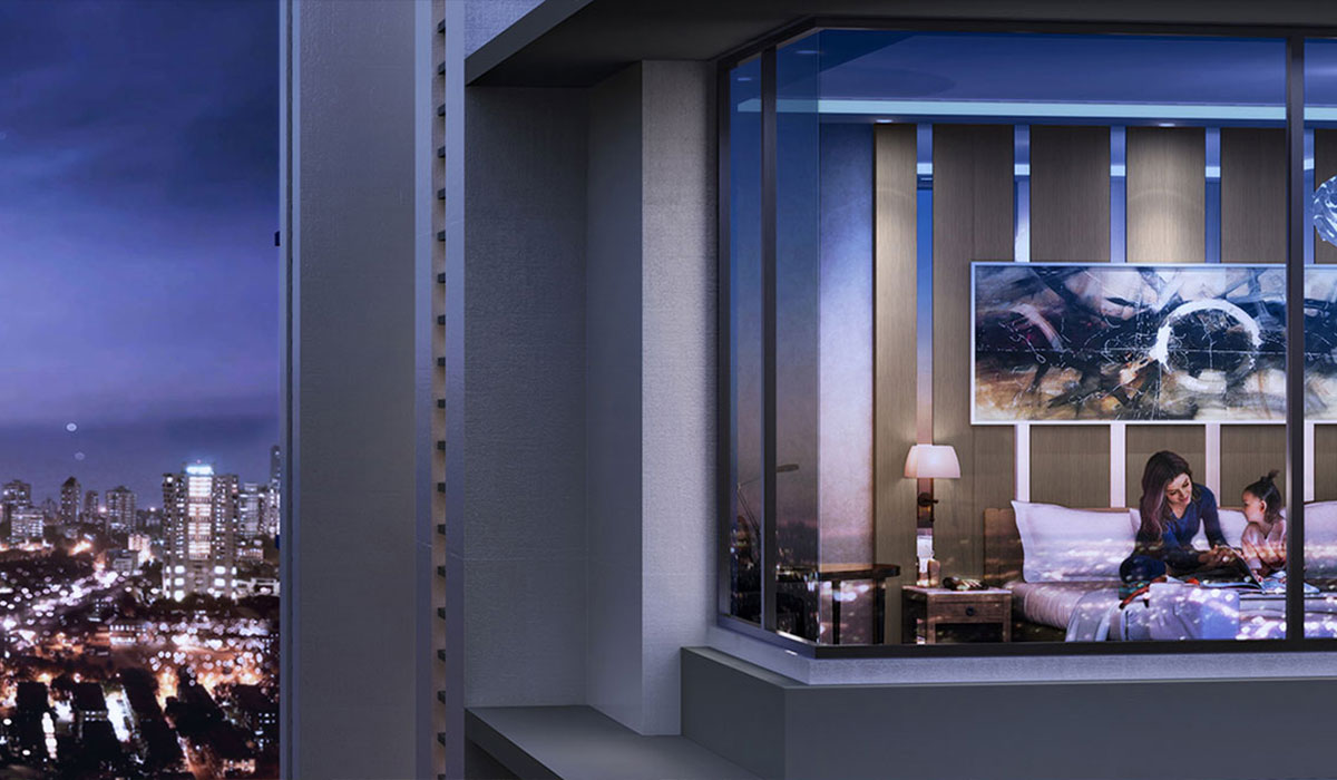 Poised to become one of the most coveted addresses within the billionaire niche of Mumbai, at 111 ft. above the city, each space pays a quiet homage to the exclusive. Veering off Annie Basant road, the company of luxe hotels, expansive roadways, corporate headquarters, and a racecourse, step into a world of your own.